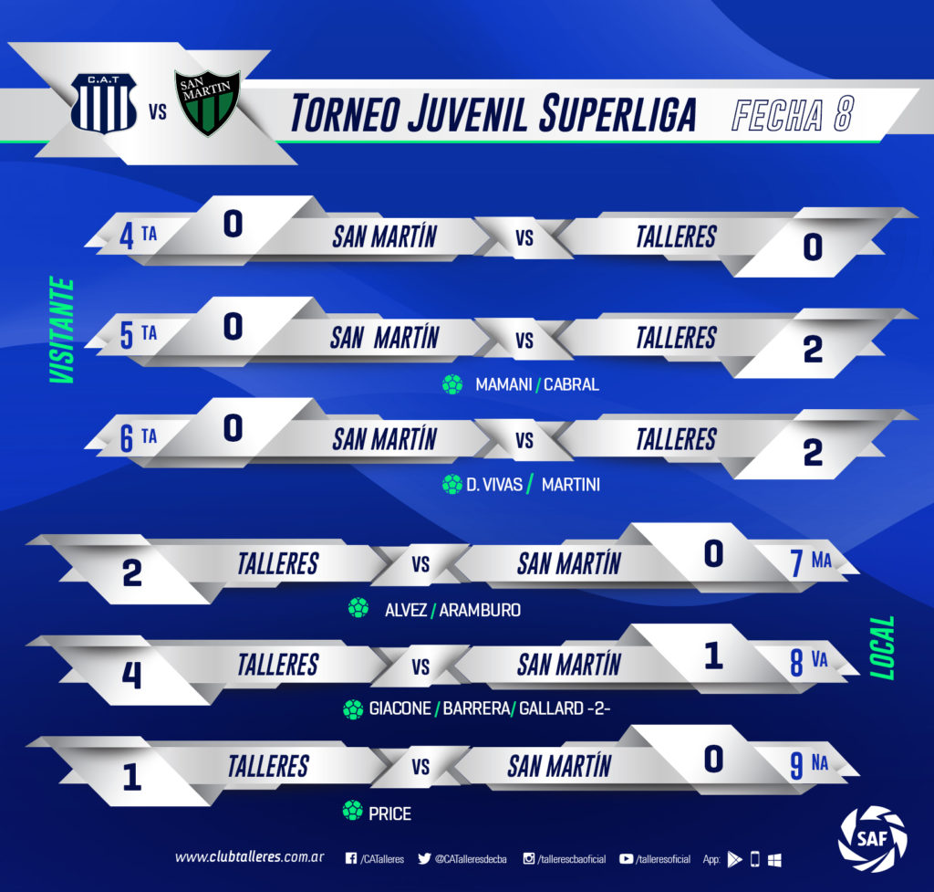 Jugada la octava jornada del Torneo Juvenil de la Superliga 2019, Talleres tuvo una producción más que positiva, cosechando 16 puntos de los 18 que estaban en juego (cinco victorias y en empate), ante San Martín de San Juan.